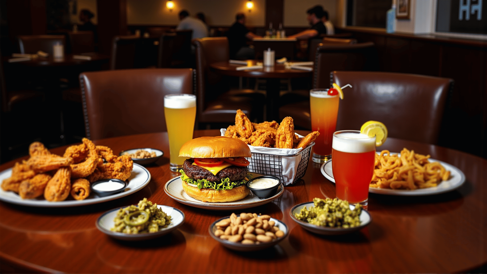 Accompany your drink with an array of mouth-watering dishes crafted to complement the flavors in your glass. Starters include the "Crispy Calamari," perfectly seasoned and served with a jalapeño aioli for a delightful kick. Or try the "Truffle Fries," golden and crispy, drizzled with truffle oil and topped with grated Parmesan.
